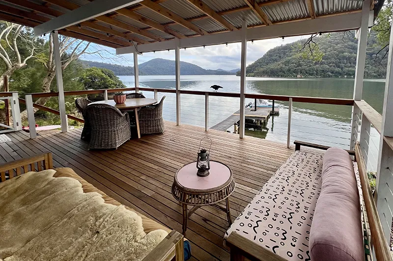 Escape to your private slice of heaven! Accessible only by boat, this secluded waterfront retreat offers couples the perfect mix of romance, relaxation, and adventure—all with breathtaking northeast-facing views of the Hawkesbury River and ancient escarpments.